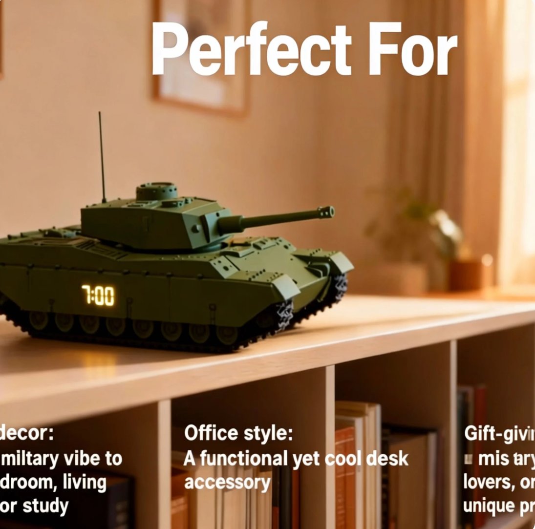 Inspired by classic armored vehicles, this clock features a detailed tank silhouette with a durable matte finish, tactical accents, and a bold, readable display. Every line reflects strength and precision, making it a standout decor piece for any environment.